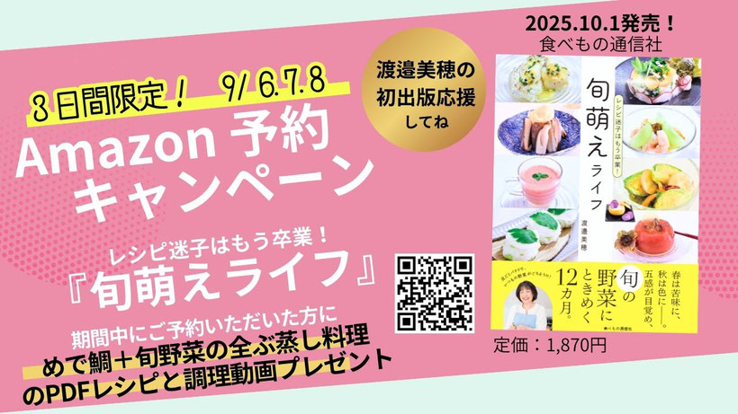 Amazon予約で「めで鯛全ぶ蒸しレシピPDF&レッスン動画」プレゼント🎁